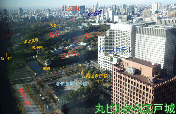ちょうど江戸城が見下ろせ、本丸~北の丸、外濠の先の東京ドーム、果ては富士山までクッキリ!!